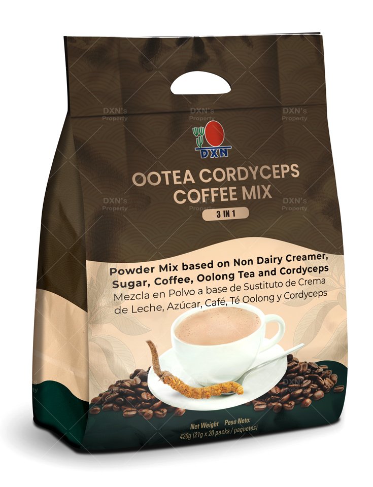 DXN Ootea Lingzhi Coffee Mix 3 en 1 está elaborado con granos de café de alta calidad, té oolong en polvo de primera calidad y con los beneficios adicionales de Ganoderma, ahora puedes disfrutar de tu taza de cham favorita dondequiera que estés y cuando quieras. Con la cantidad justa de azúcar y crema para equilibrar el sabor, una taza de DXN Ootea Lingzhi Coffee Mix 3 en 1 seguramente dará en el clavo. Viene en pequeños paquetes individuales para facilitar su uso y prepararlo sin complicaciones