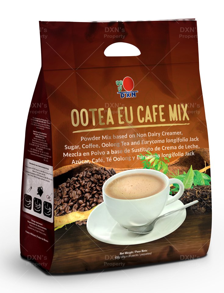DXN Ootea Eu Cafe Mix está elaborado con granos de café de alta calidad, té oolong en polvo de primera calidad y con los beneficios adicionales de Ganoderma y ‘Tongkat Ali’, DXN Ootea Eu Cafe Mix garantiza que se sentirá fresco y alerta durante todo el día. Es más, ahora puedes disfrutar de tu taza de cham favorita dondequiera que estés y cuando quieras. Viene en pequeños paquetes individuales para facilitar su uso y prepararlo sin complicaciones.